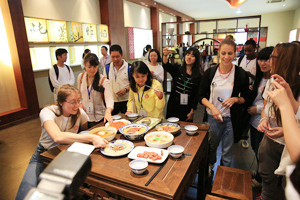 6月24日“海外名校走進(jìn)金華古村落”活動(dòng)第一季的42名來(lái)自世界各國(guó)名校教授、學(xué)生乘坐著B(niǎo)RT專車,參觀了金字建設(shè)的中國(guó)火腿博覽館和世界火腿博覽館,了解傳承千年的中國(guó)火腿文化。想了解現(xiàn)代與傳統(tǒng)交融的金華,金華火腿自然是不可或缺的元素,在金字總部的國(guó)內(nèi)首個(gè)中國(guó)火腿博覽館,學(xué)生們深入地了解了金華火腿文化的千年歷史傳承。在中國(guó)火腿博覽館內(nèi),記錄了金華火腿從唐朝起就聞名天下的歷史淵源……